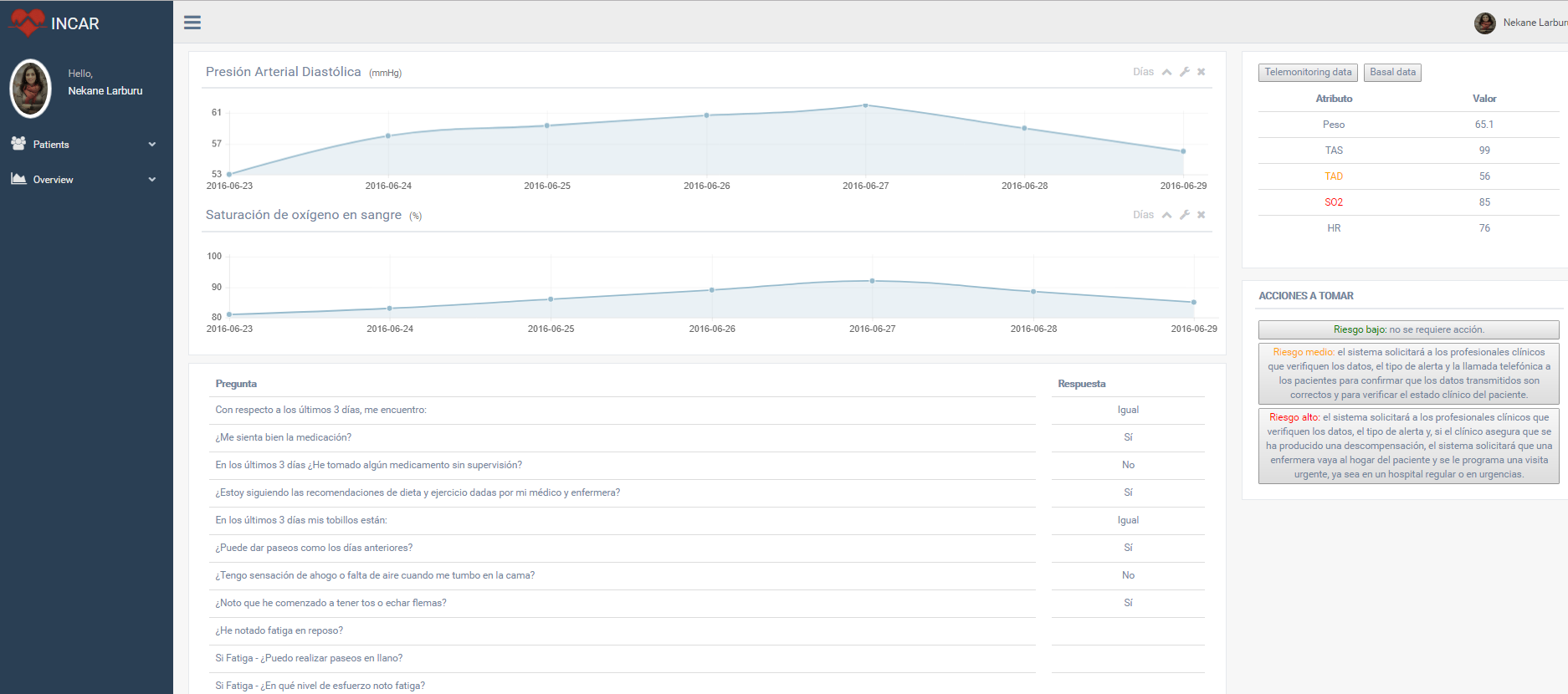 Para reducir el número de descompensaciones, existen nuevas tecnologías TIC emergentes que puede predecir no solo la readmisión de pacientes con insuficiencia cardíaca, sino también el riesgo de ingreso de pacientes monitorizados. En este contexto, INCAR tiene como objetivo desarrollar un sistema de telemedicina integral basado en modelos predictivos para detectar los riesgos de que un paciente sufra descompensación.
