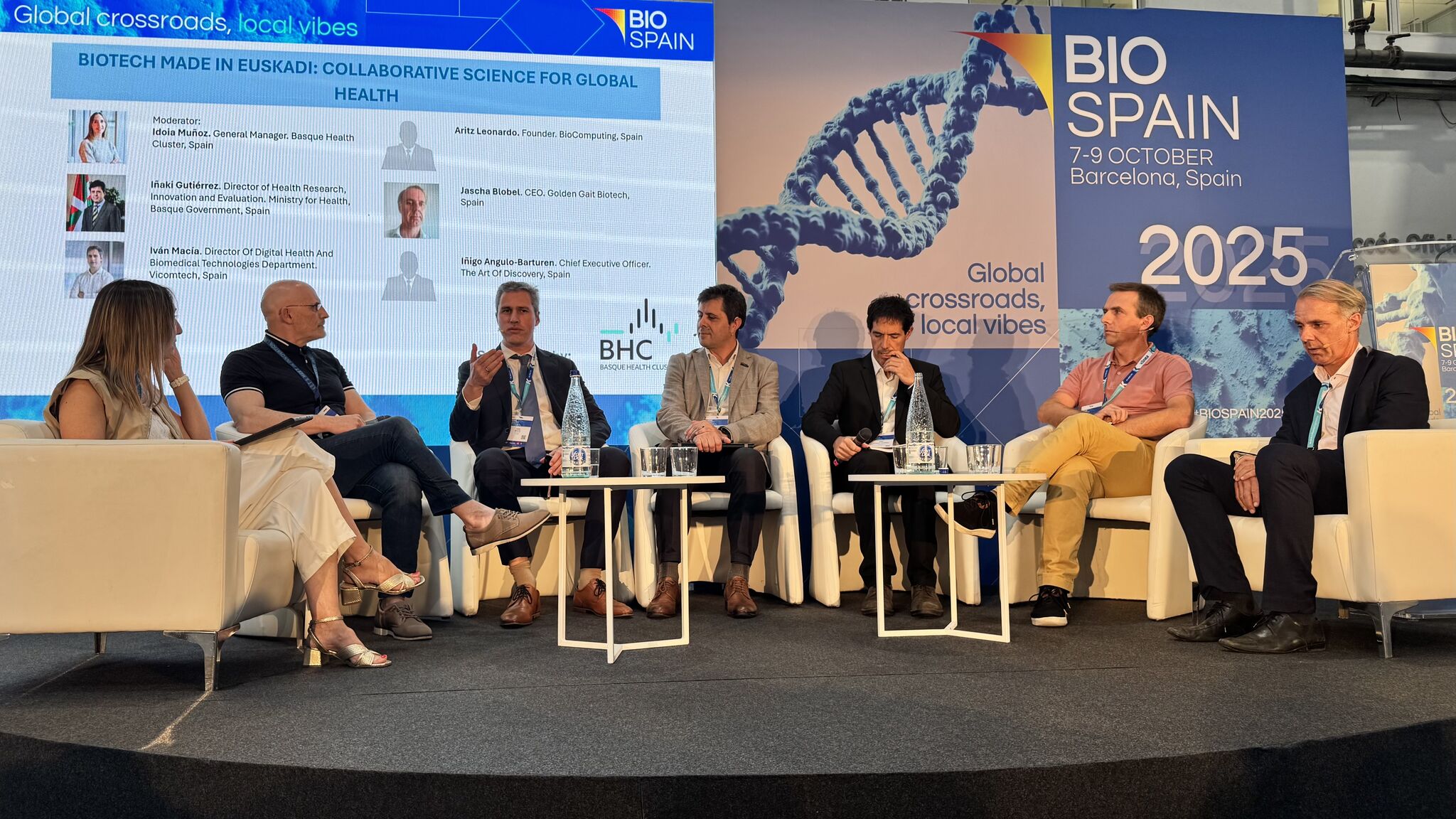 Gure standetik, Inteligentzia Artifiziala droga-garapen prozesu osoa azkartu eta optimizatzeko dugun konpromisoa erakutsi dugu. Horrez gain, Iván Macía, Vicomtecheko Osasun Digital eta Teknologien zuzendariak, “Biotech Made in Euskadi” mahai-inguruan parte hartu du, sektoreko ordezkariekin—publiko zein pribatu—euskal bioteknologia ekosistemen sendotasuna eta zientzia, teknologia eta industria elkarlanerako aukerak nabarmentzen. Bere hitzaldian, Macíak azpimarratu du nola IA eta datu aurreratuen analisiak droga-zikloa eraldatu dezaketen: terapiei bideratutako helburu berriak identifikatzea, molekulak diseinatzea, eraginkortasuna eta segurtasuna aurreikustea, eta saiakuntza klinikoak optimizatzea.